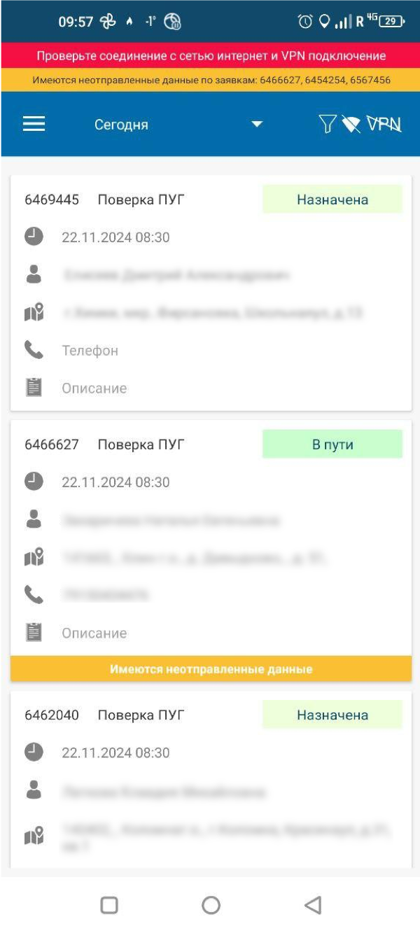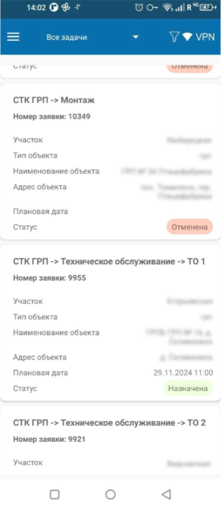 Исполнитель в мобильном устройстве видит актуальную информацию по плану работ на день