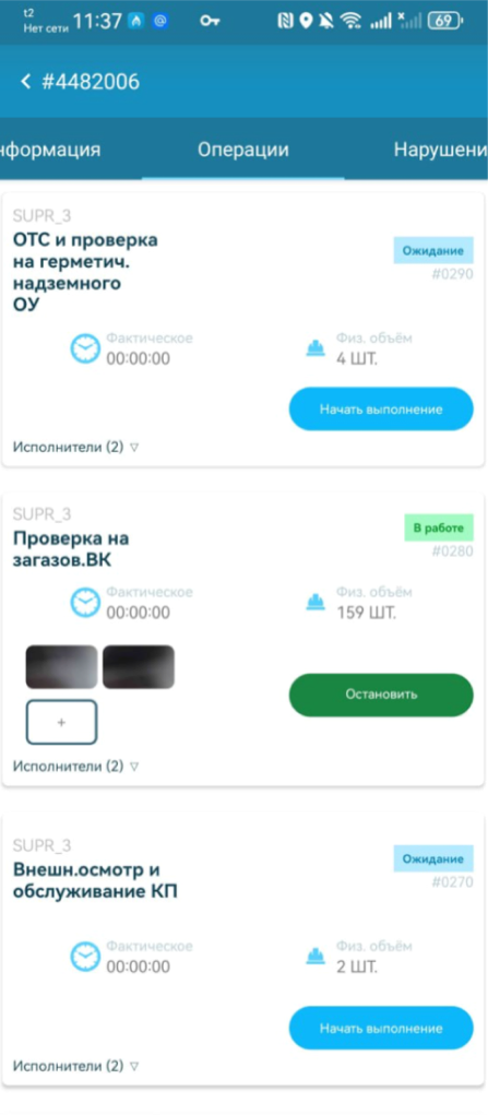 Каждая заявка имеет операции выполнения, которые задают исполнителю подзадачи требующие от него действий и отчета